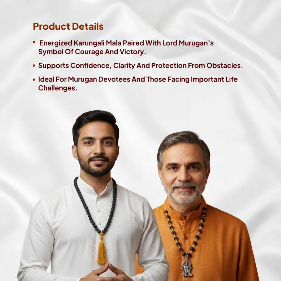 What’s Inside: Karungali Mala, Murugan Pendant Mala, Blessing Card, Authenticity Certificate.