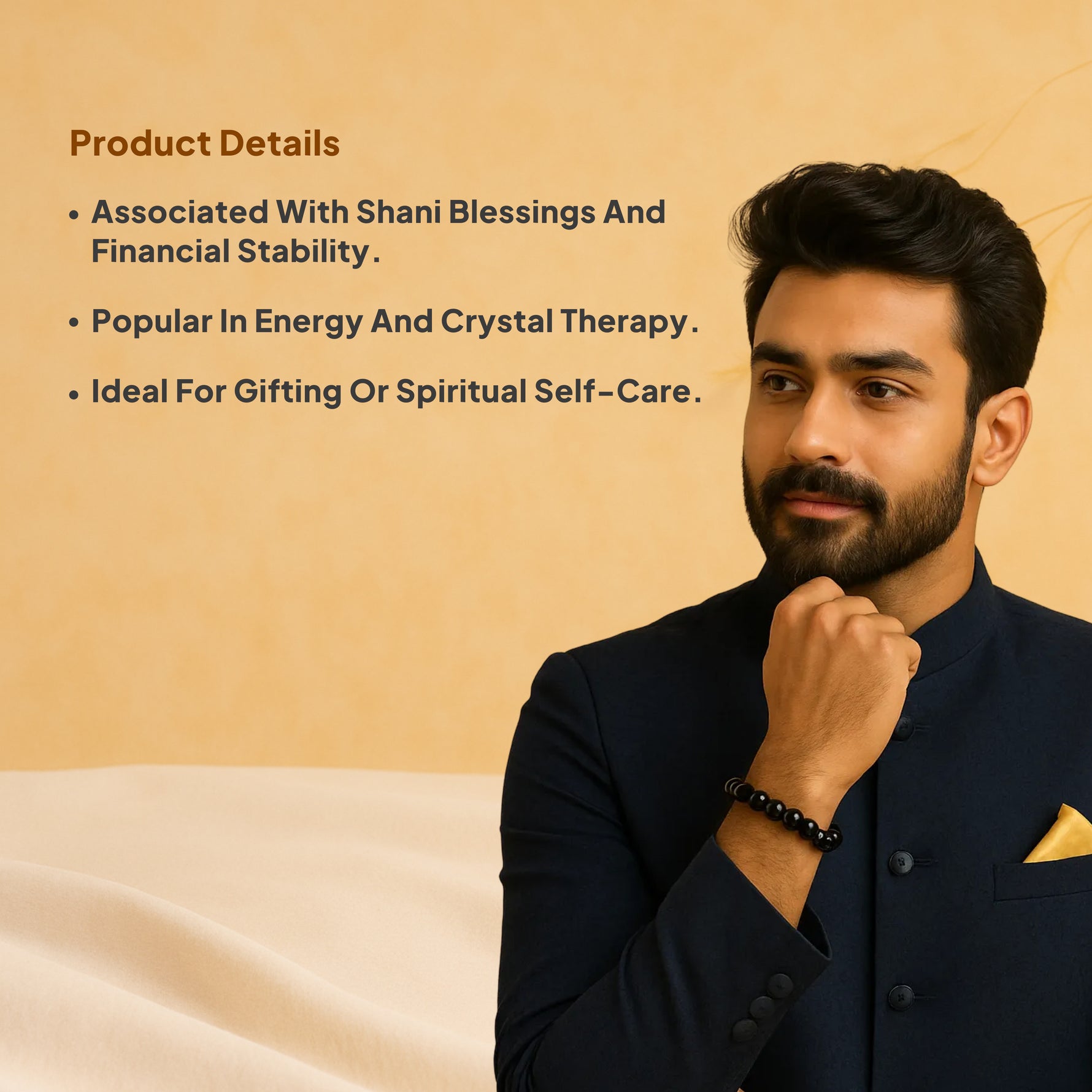 Generally, bracelets are worn on the wrist you feel most comfortable with. Some people prefer the right hand, while others follow personal or traditional beliefs. You will however receive an instruction card on how and when to wear the product.